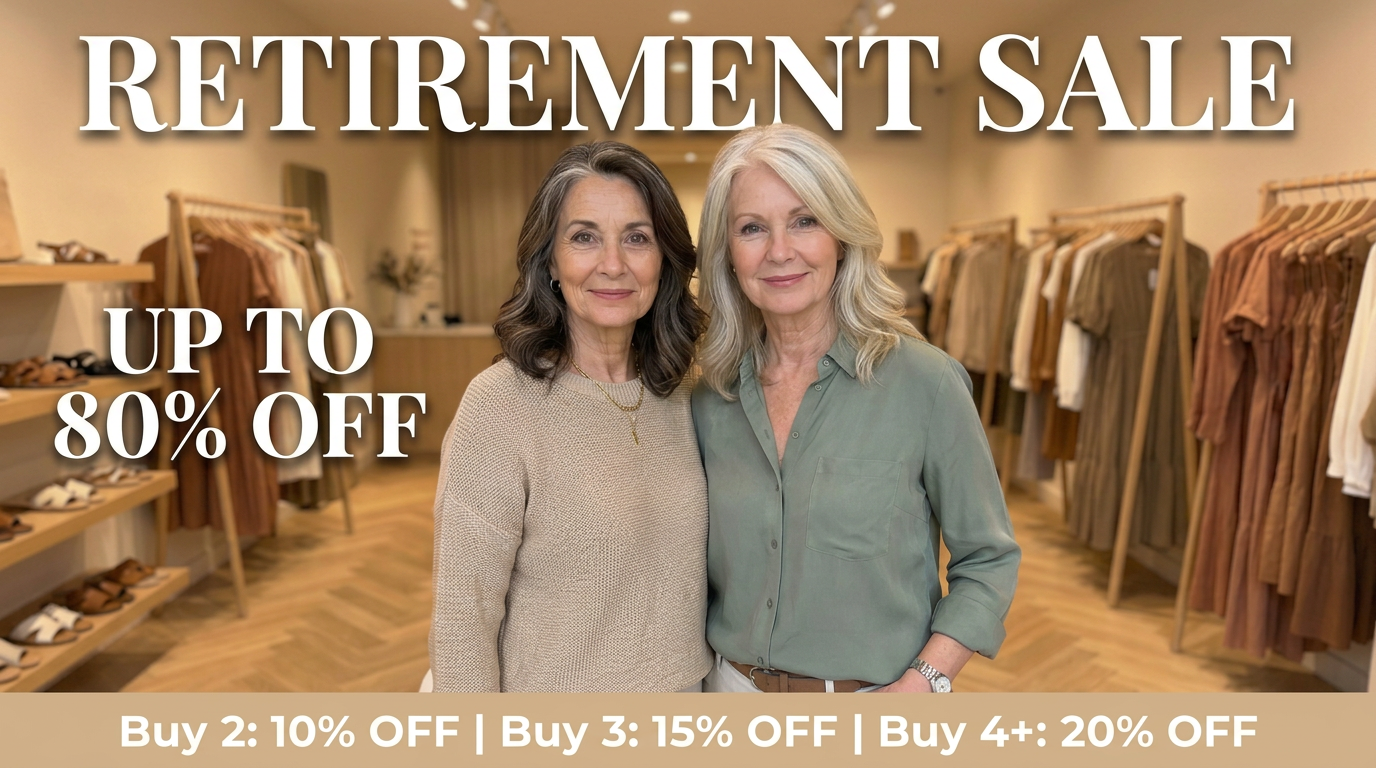 To thank every woman who supported this journey, we're offering up to 80% off during our Retirement Sale, to clear everything out before we close our doors for good.